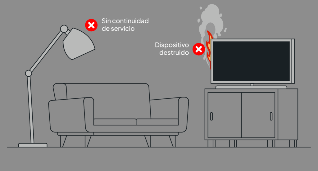 - Daño irreversible en la electrónica sensible, como televisores, ordenadores, electrodomésticos o cualquier equipo de alto valor presente en el hogar o en una instalación terciaria.