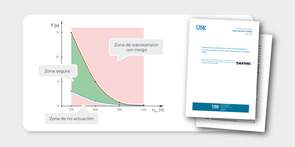 Para asegurar una protección real frente a sobretensiones permanentes es imprescindible instalar protectores que cumplan la UNE-EN IEC 63052 y hayan sido ensayados para verificar el cumplimiento normativo.